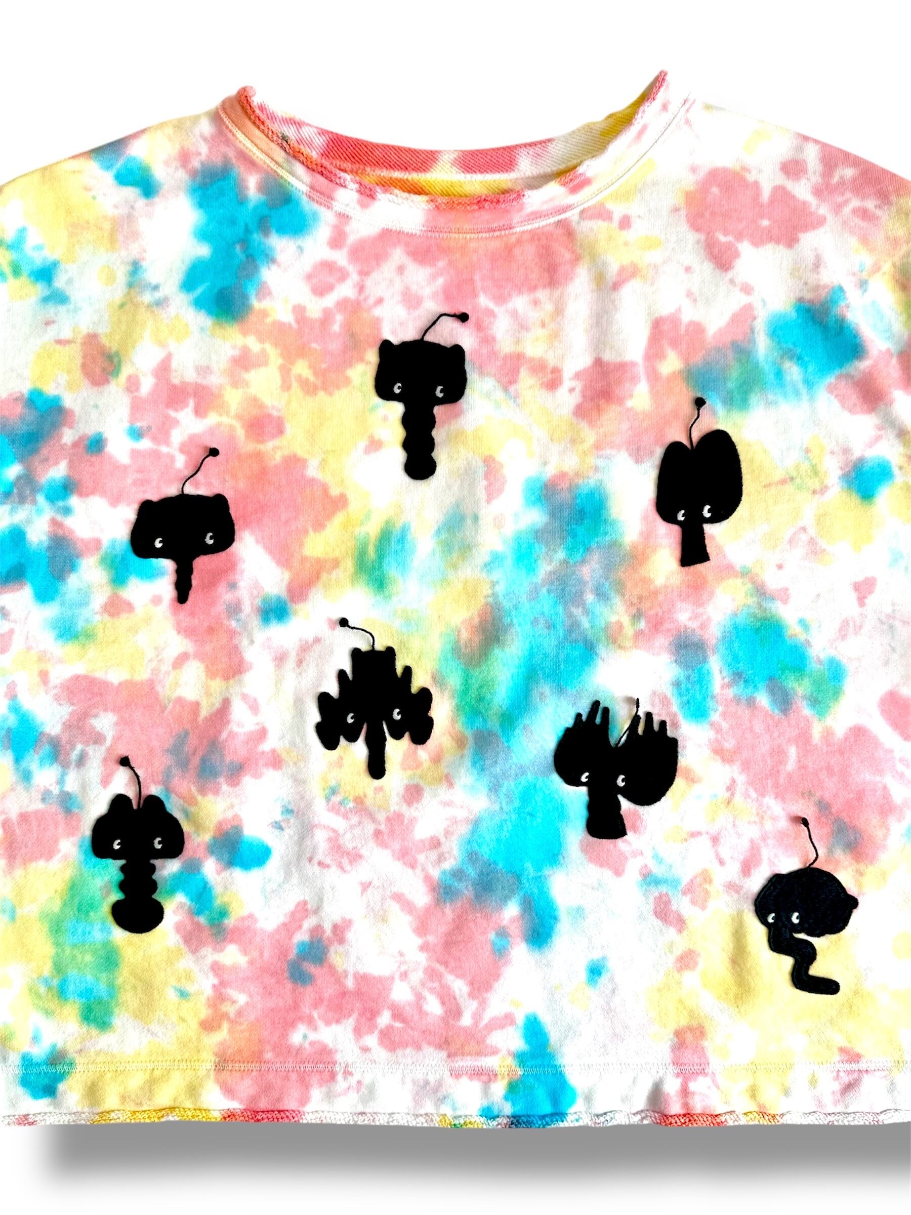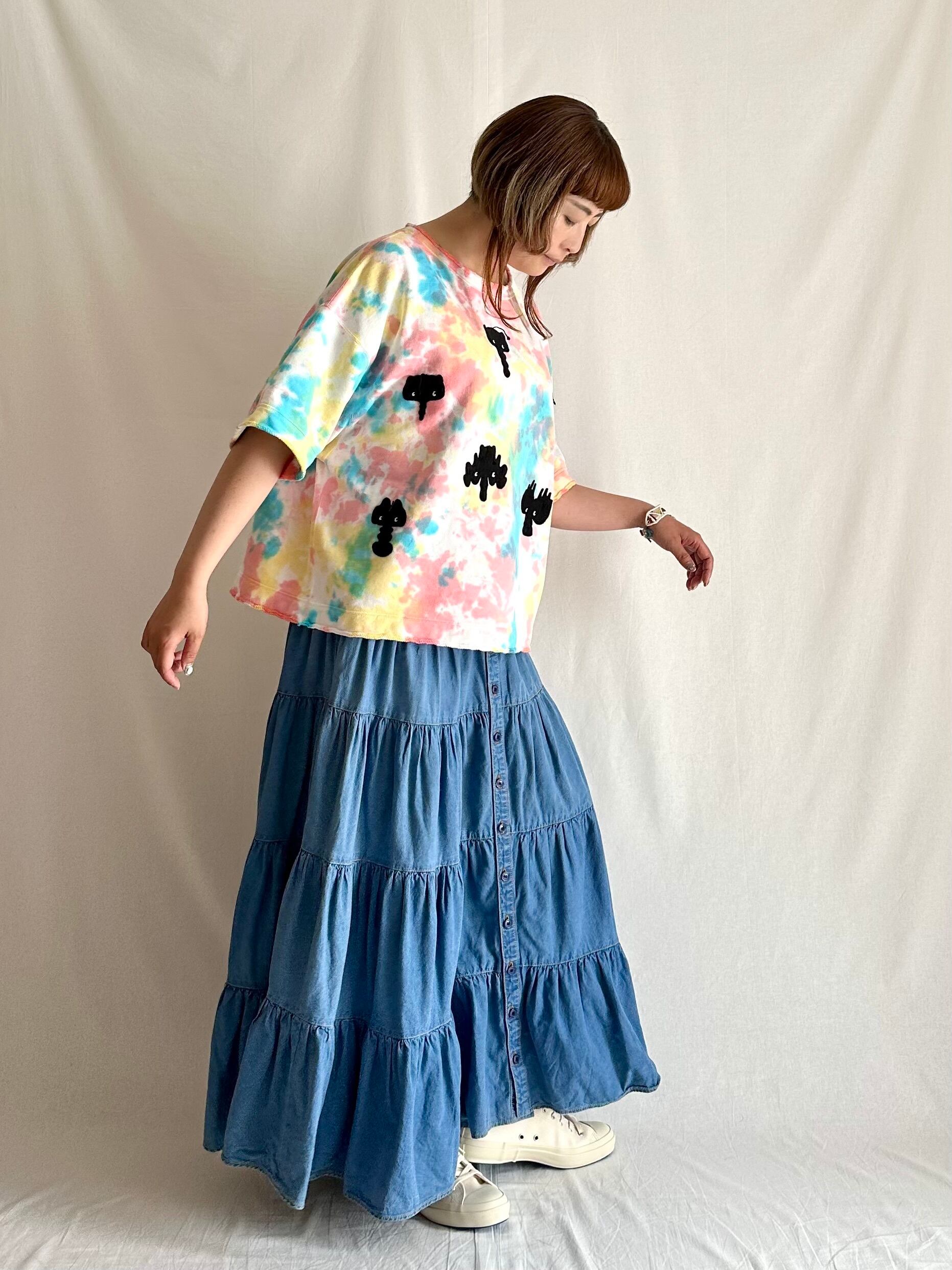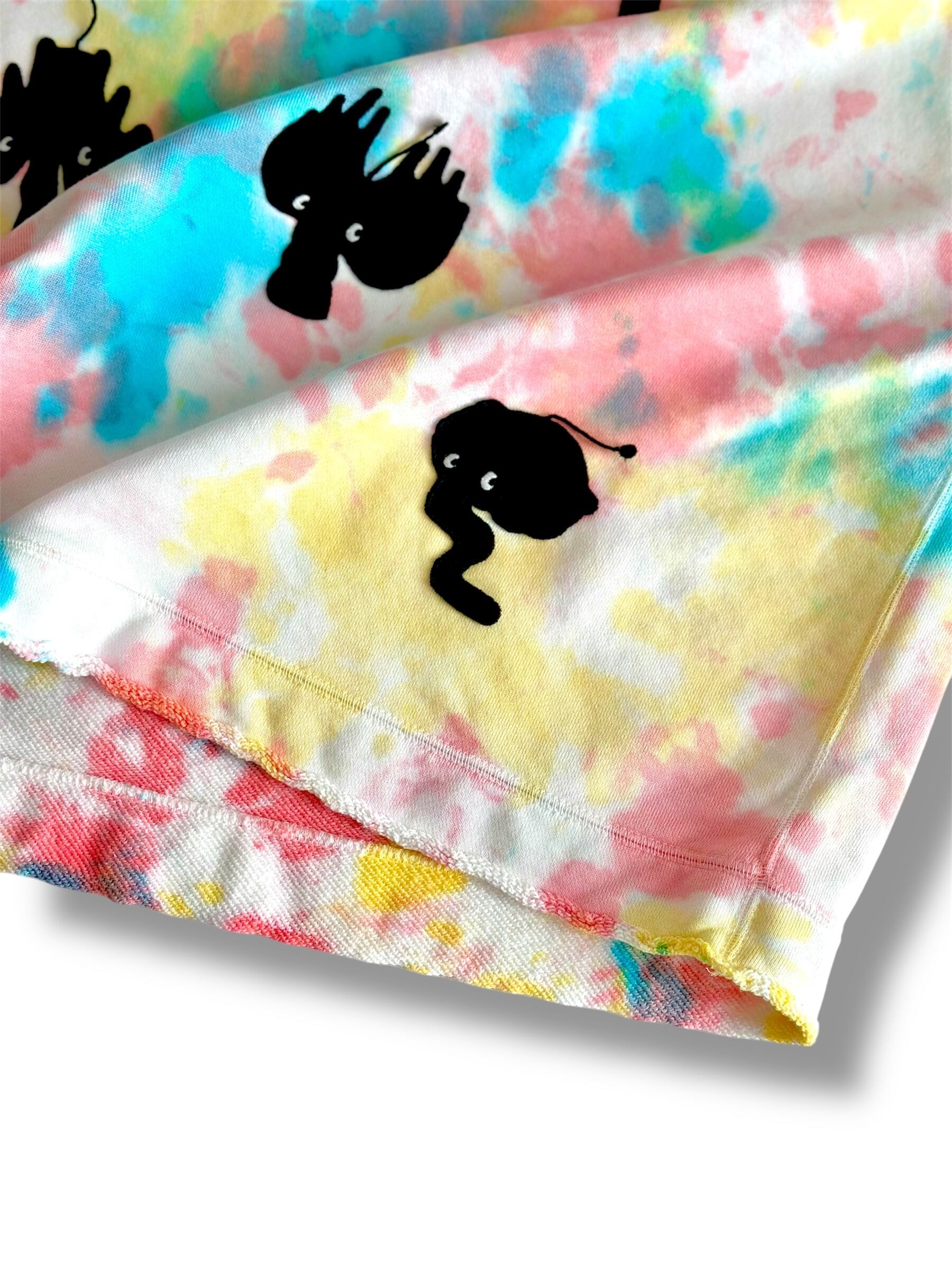 想像をつかさどる生命の樹に”SEIREI”たちが集まるFestival。個性さまざまな”SEIREI”たちのレースのモチーフは、まるで海の中のいろとりどりのサンゴの樹の枝に姿を現したよう。そんな幻想的な光景を、鮮やかなタイダイ染めとパッチワークで表現した、特別なプルオーバーです。