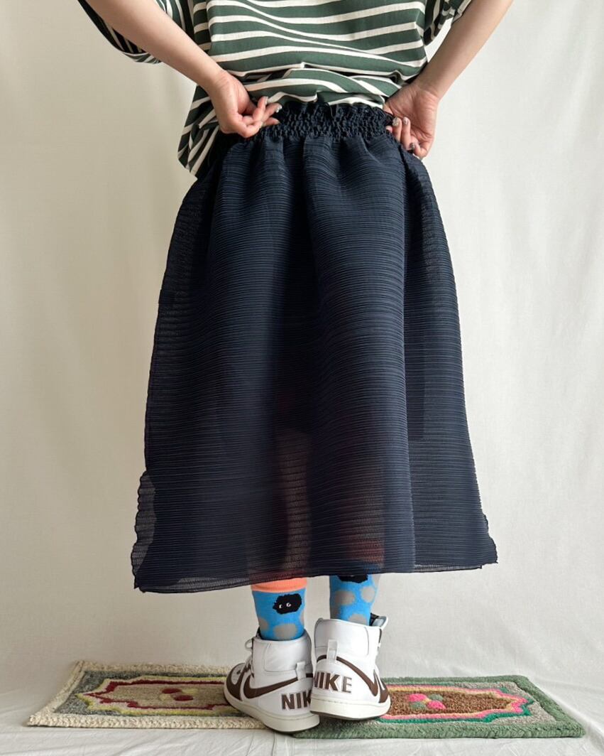 ボトムに重ねるだけで、コーディネートの印象をがらっと変えられる、シアー素材のレイヤースカート。生地幅そのままのサイズで無駄なく仕立てた、軽やかで動きのあるデザインが特徴。ギャザーを寄せてふくらみをもたせたシルエットは、歩くたびにプリーツのように上下に揺れて、気分まではずむ着こなしに。カジュアルにも、ちょっときちんと感を出したい時にも活躍する一枚です。