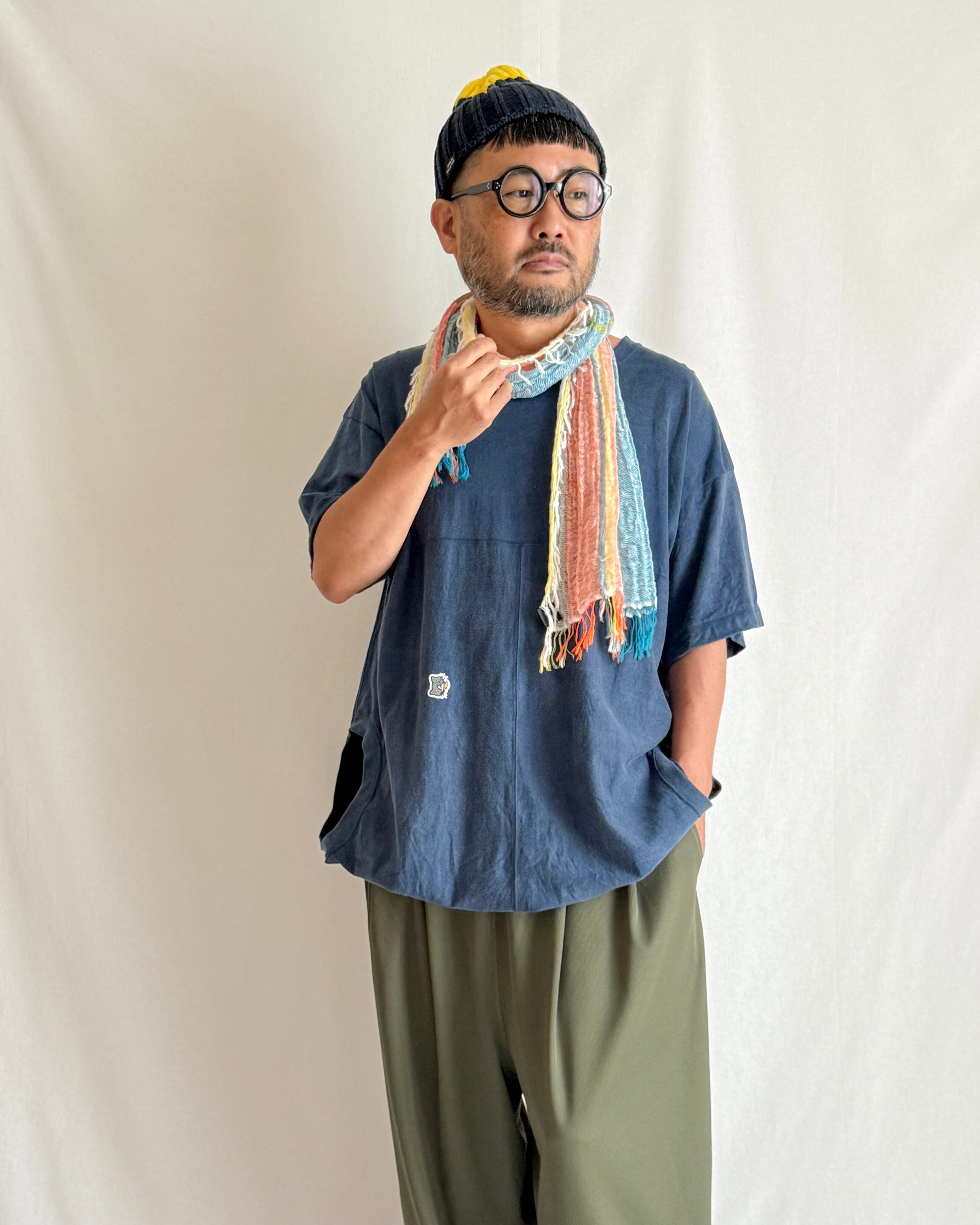 ・薄手のコンパクトなサイズ感で、軽く巻くだけで着こなしのアクセントに。持ち運びにも便利で、室内外を問わず、巻いたままで過ごせます。