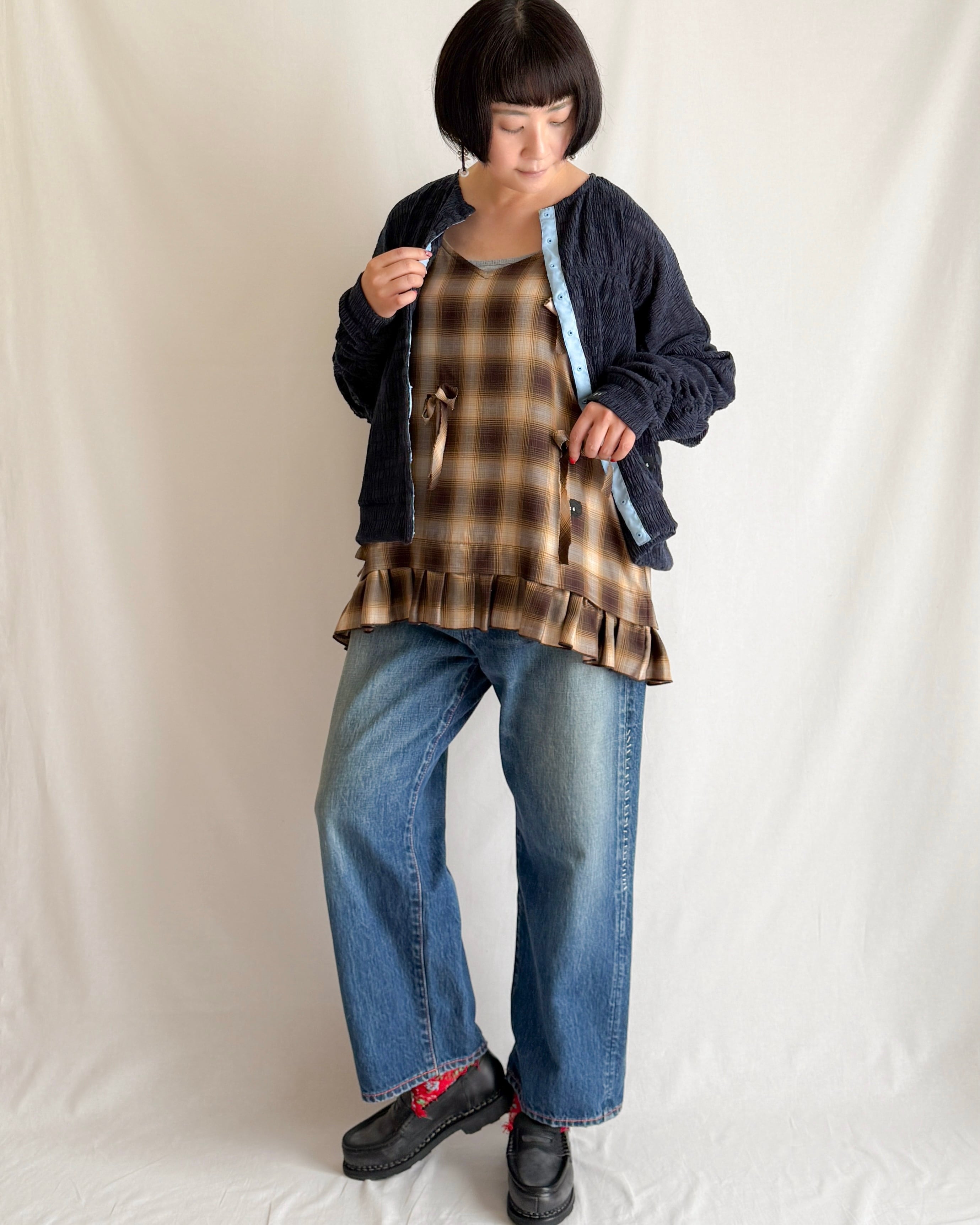 レイヤードが楽しくなる、秋色チェックのキャミソール。」