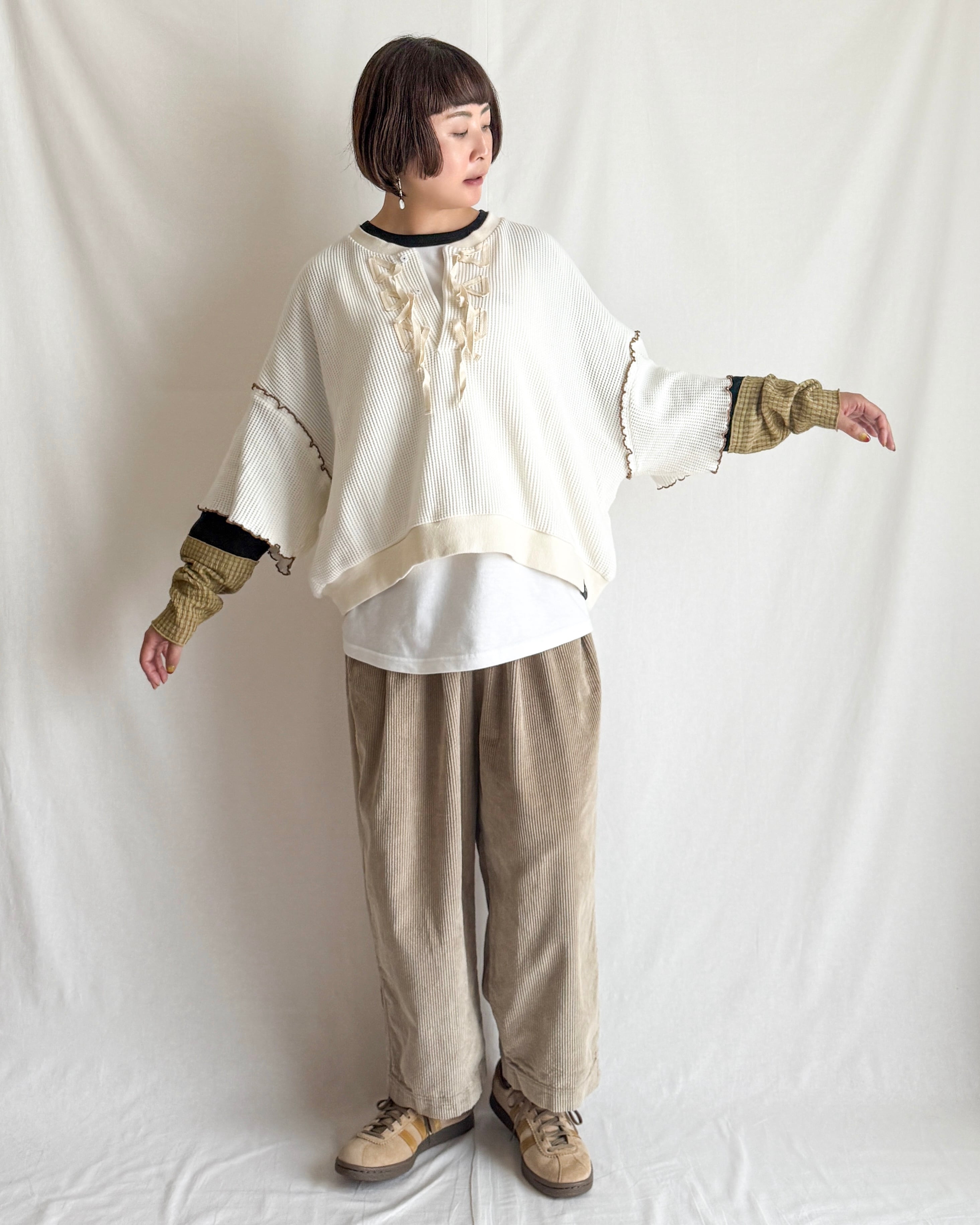 1枚でさらりと着ても、上に重ねて袖口をのぞかせても。スポーティ×レトロなムードで、秋から春まで便利に活躍します。