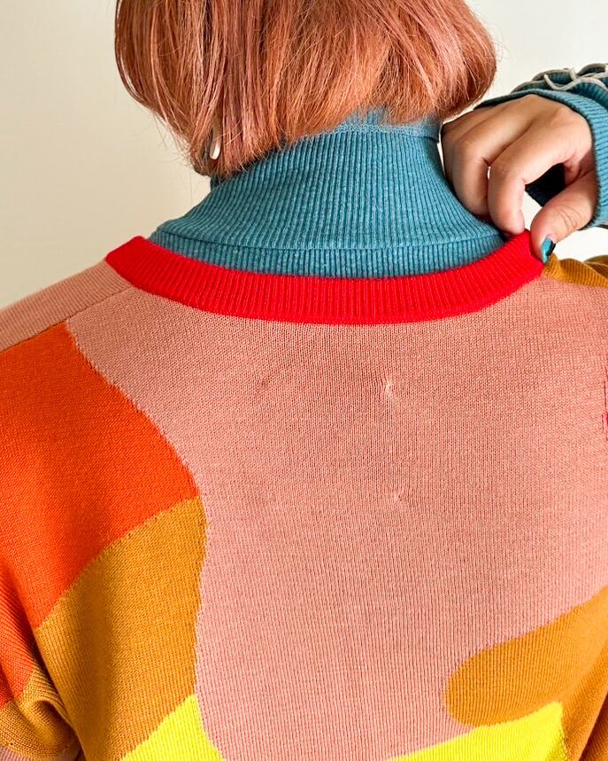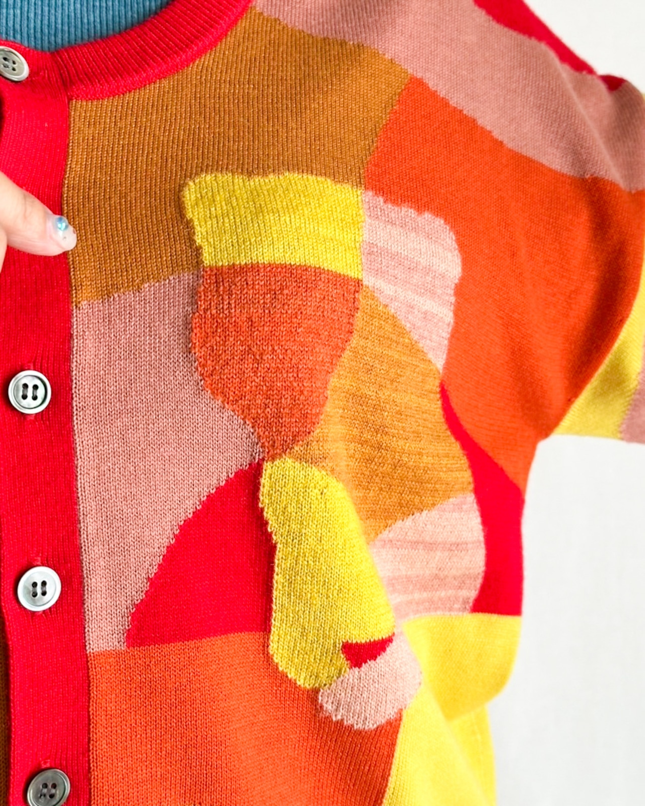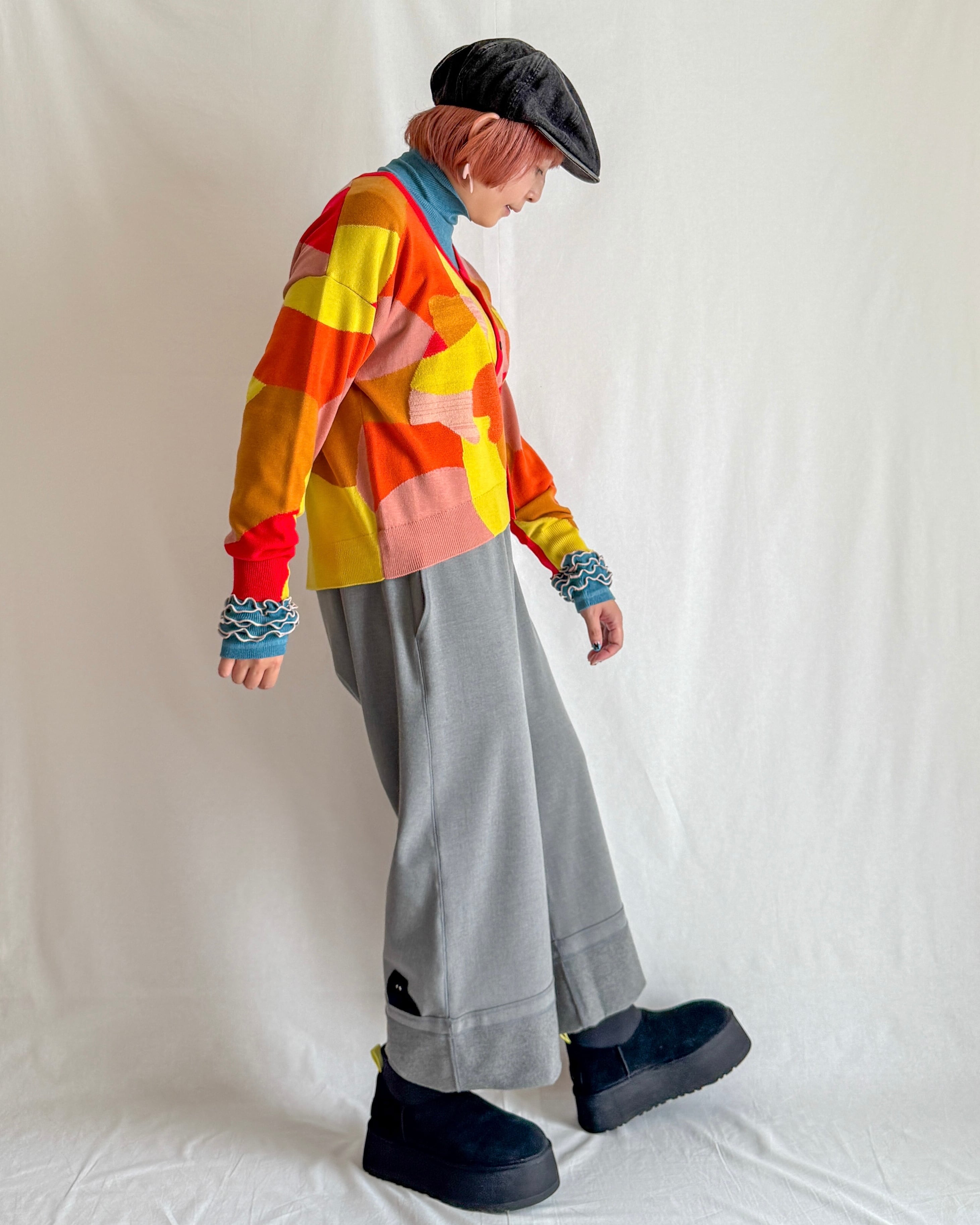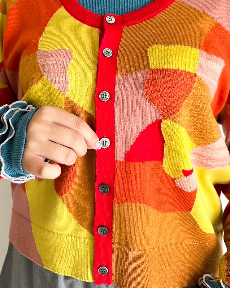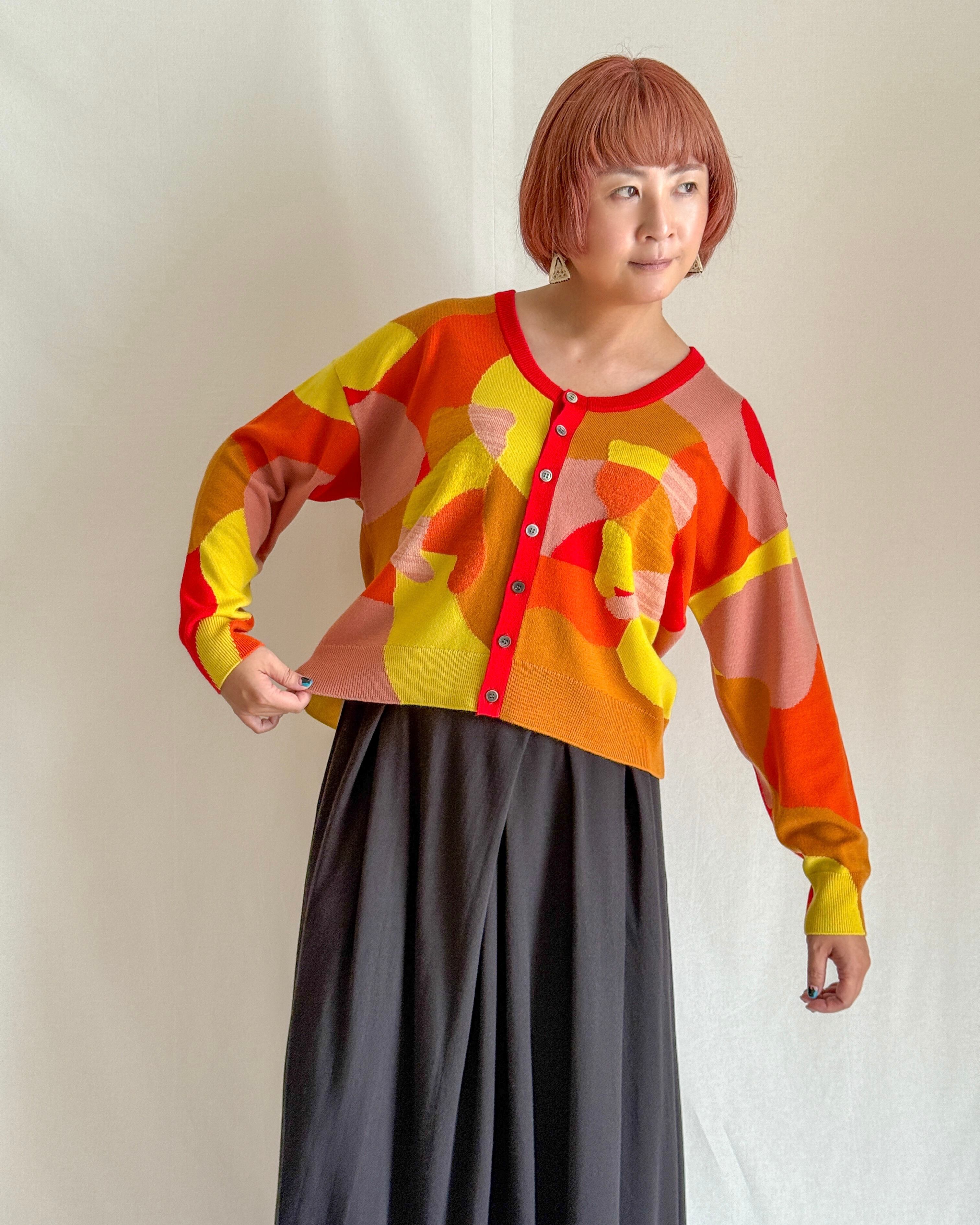 「どんなおしゃべりしてる?_ポップな色彩に溶けこむ"RETRO MOJA"の不思議めいたニットカーディガン」