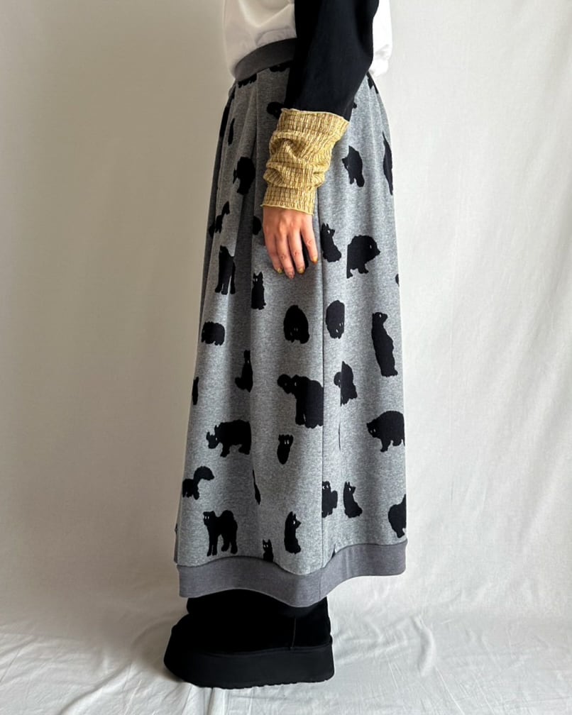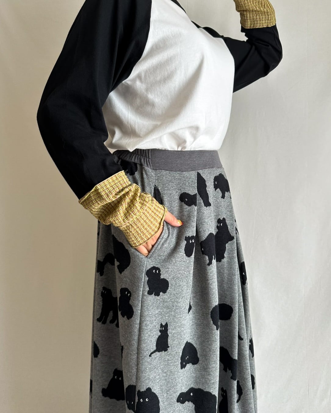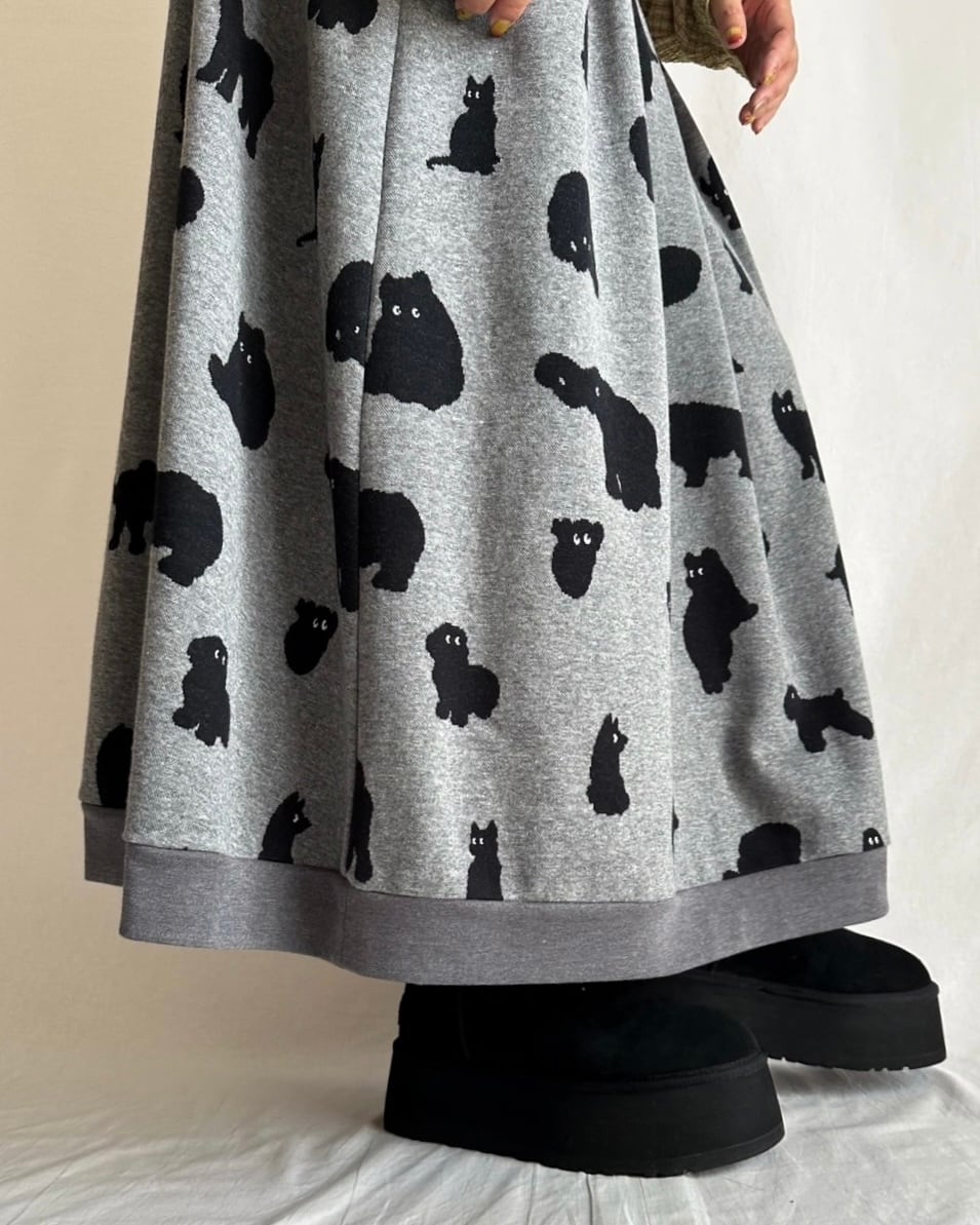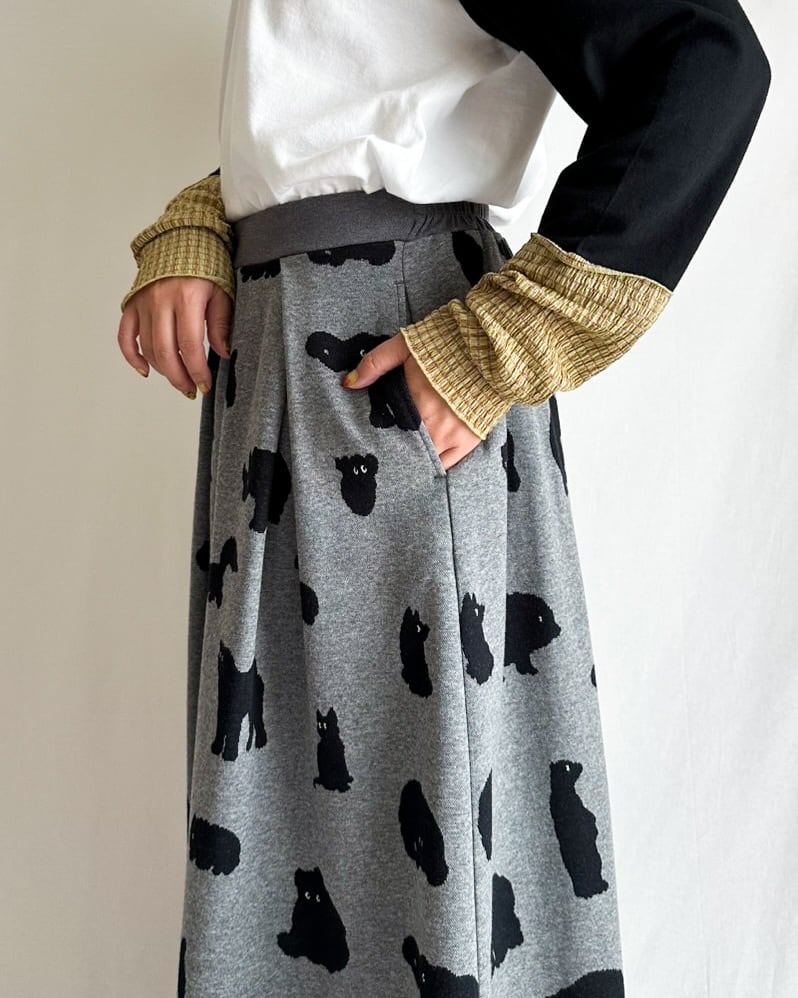 「ついターンをしたくなる。いつ着ても特別な、“This is not a cat.”の動物柄が主役のロングバルーンスカート。」