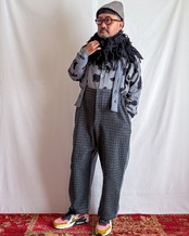 深みのあるミニチェックのコットンツイルと、あたたかなマイクロフリースをドッキングした、冬仕様のサロペット。フロントからの見た目はきちんと、着心地はふんわり。異素材の組み合わせがユニークな1枚です。ゆったりシルエットで重ね着もしやすく、防寒アイテムとして活躍します。