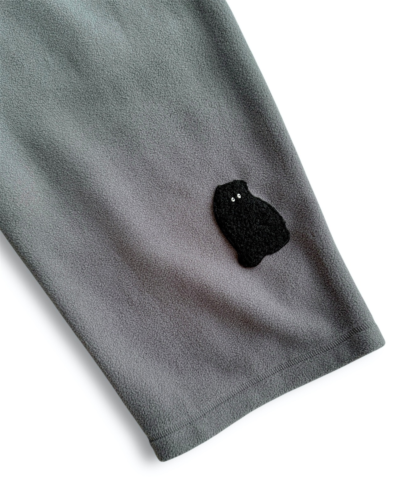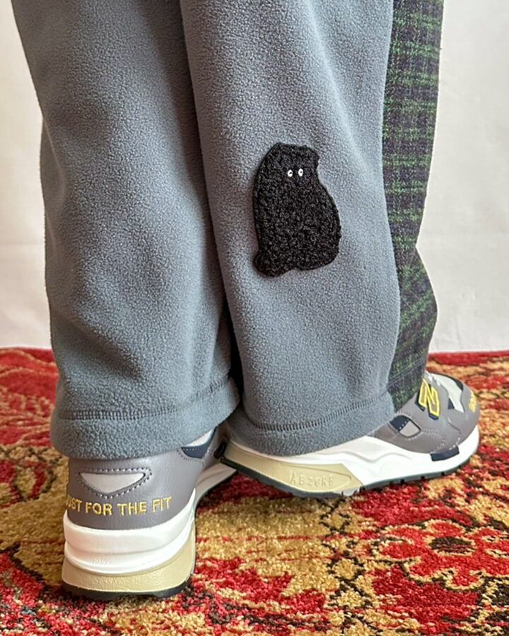・右足の後ろ裾には、「モジャ」の立体刺繍ワッペンをひっそり配置。さりげない遊び心を感じられるデザインです。