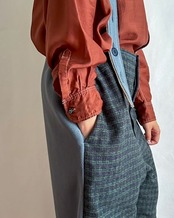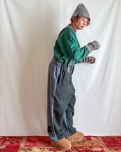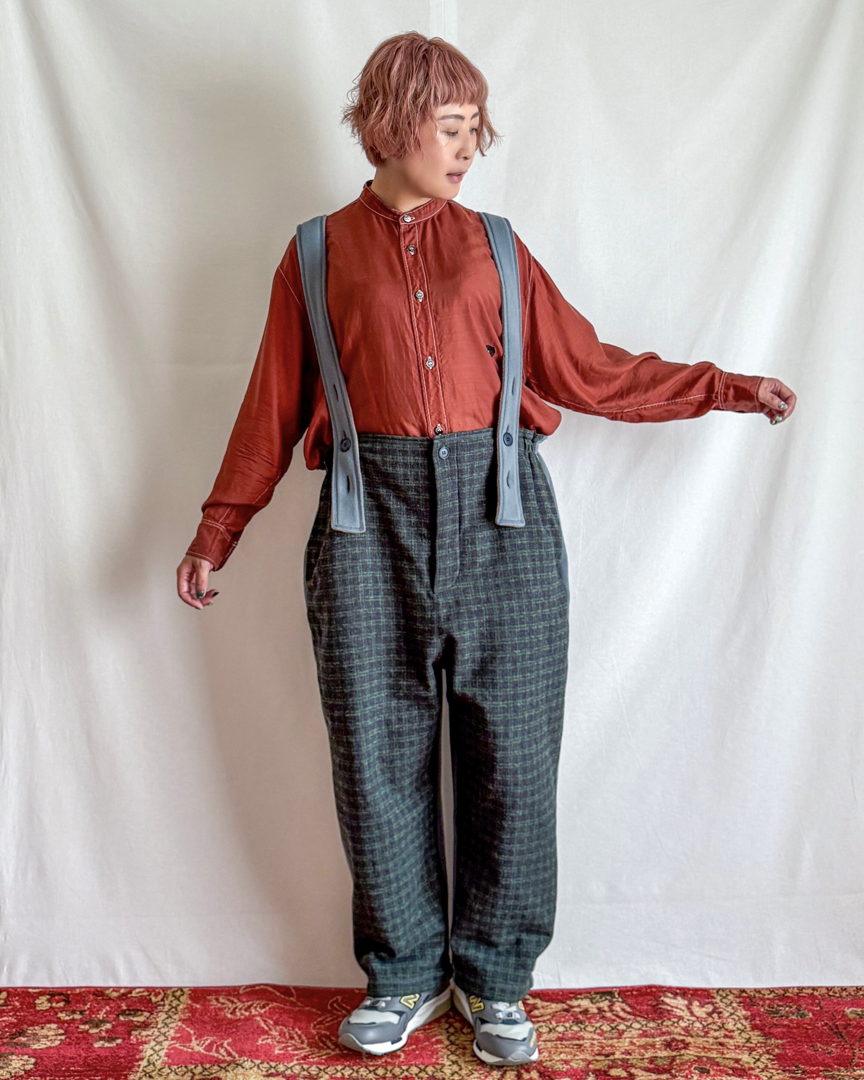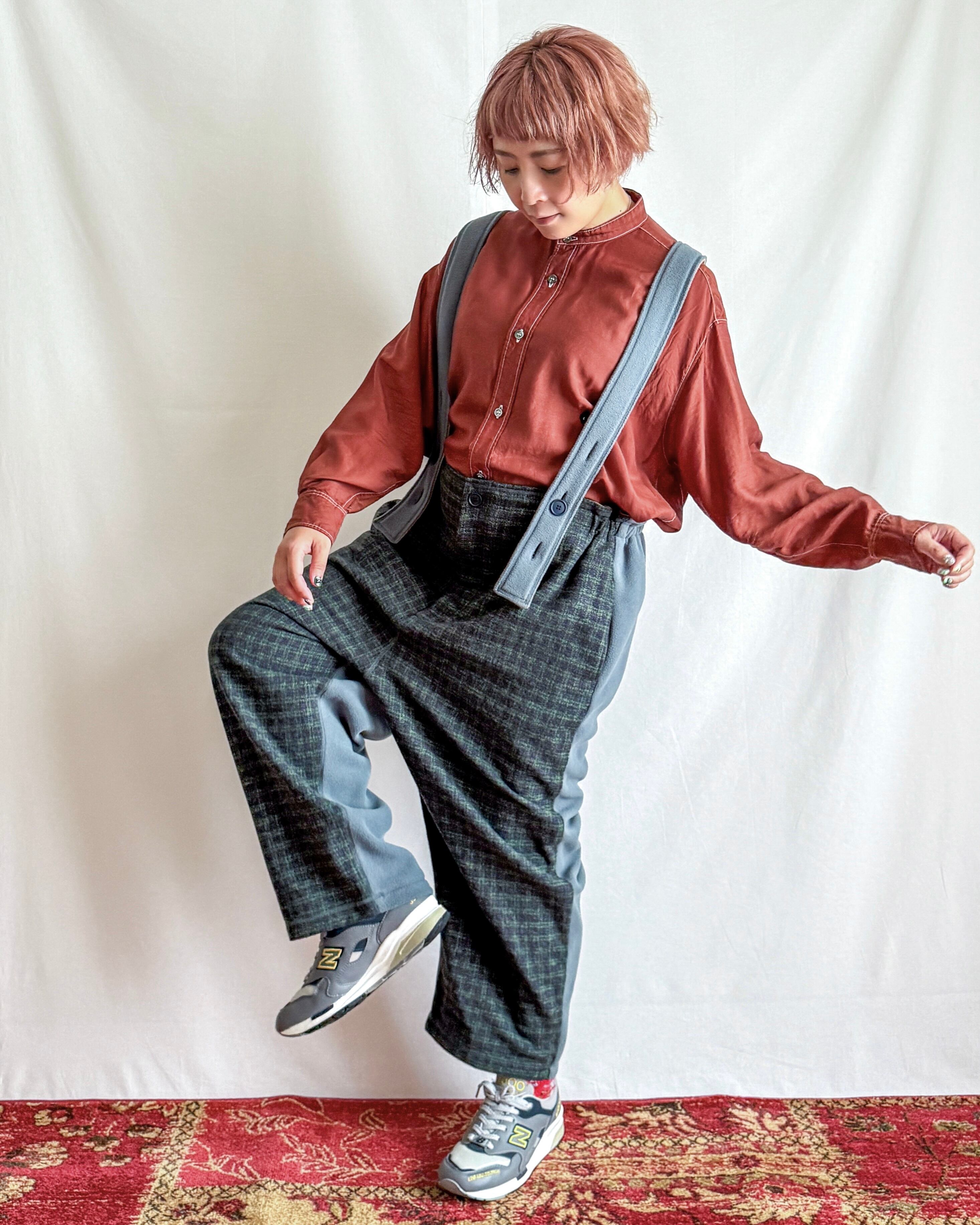 ・股上が深く、たっぷりとしたスーパールーズなシルエット。裾にかけてほんの少し絞ることで、重ね着してもバランスよく着こなせる形になっています。