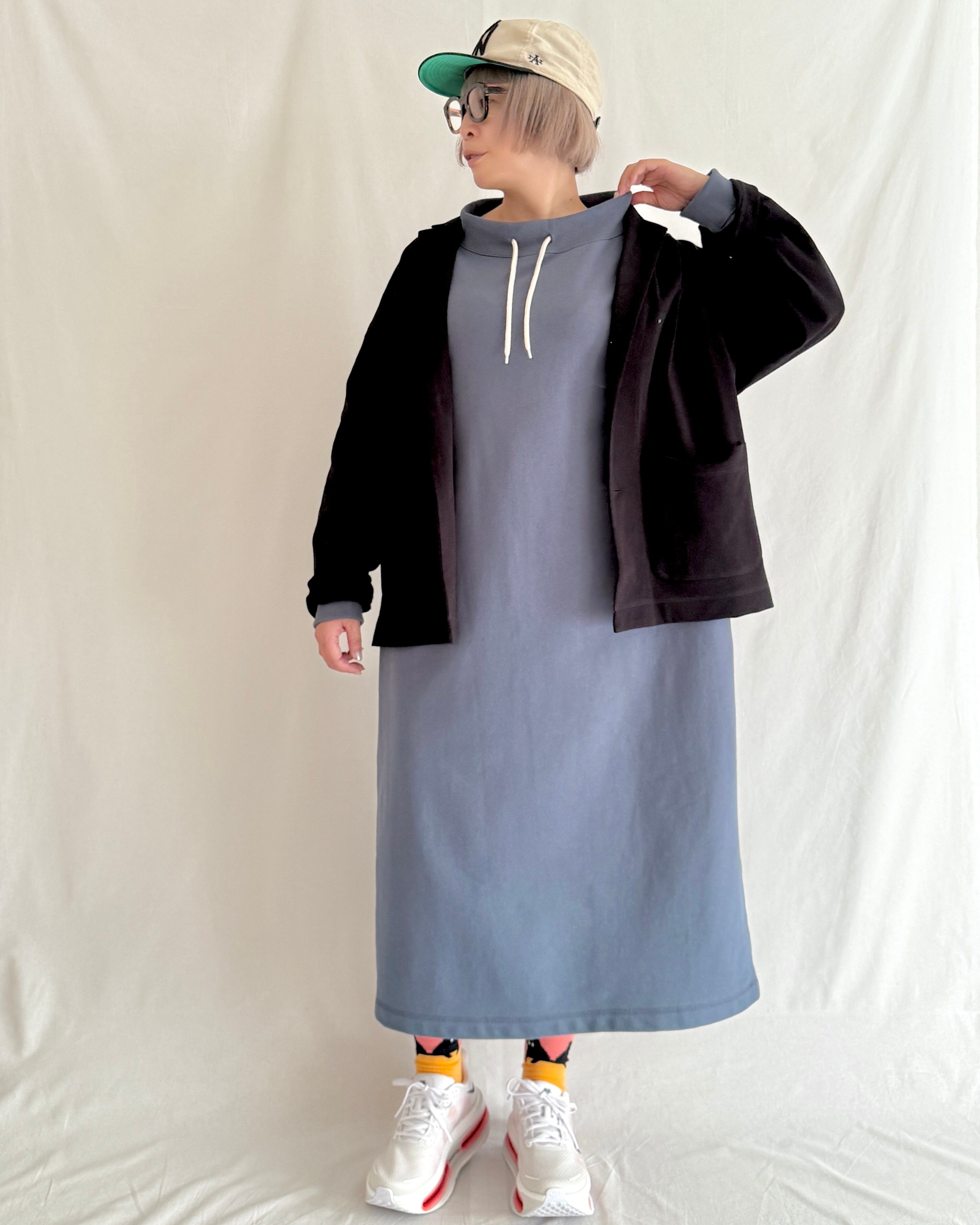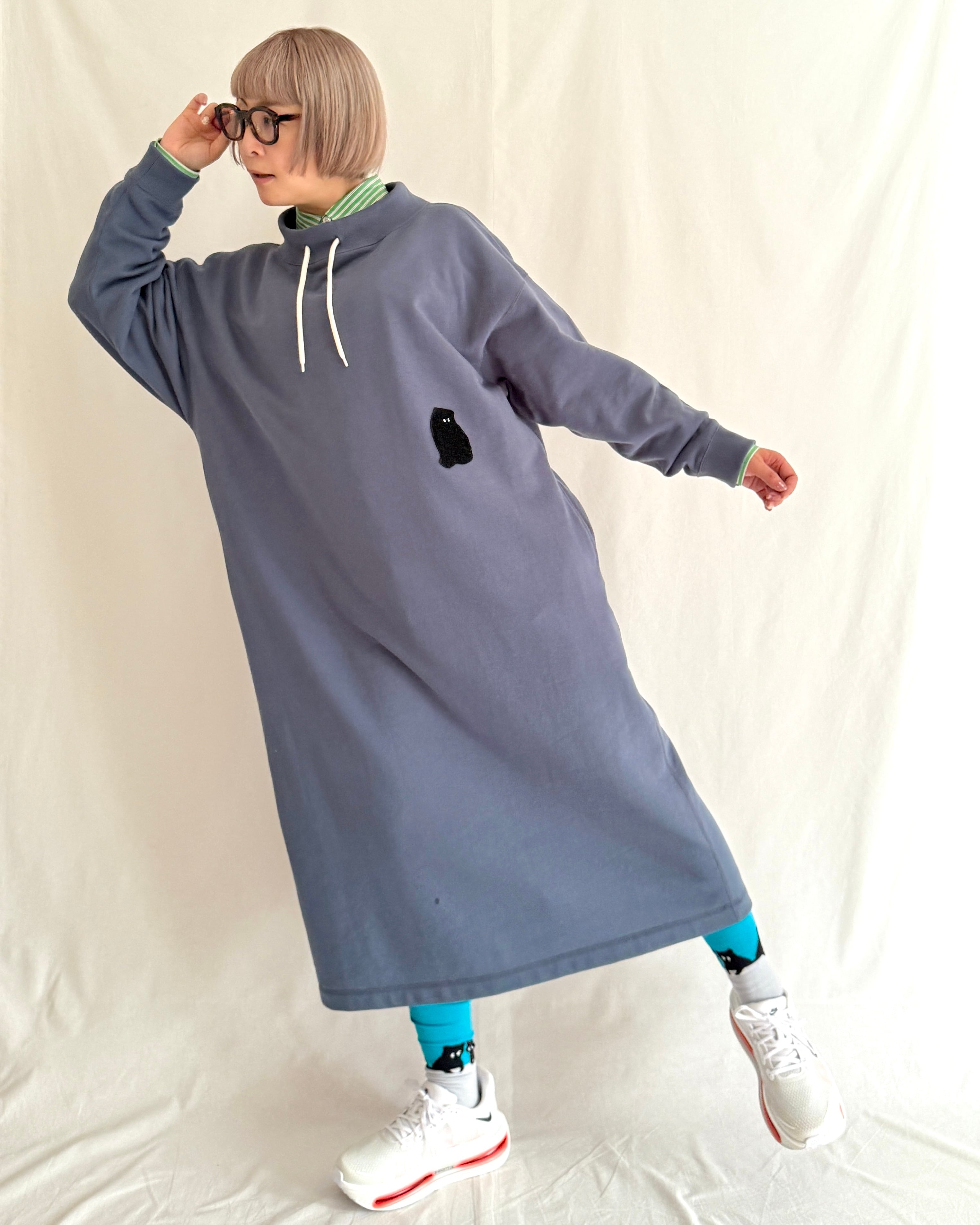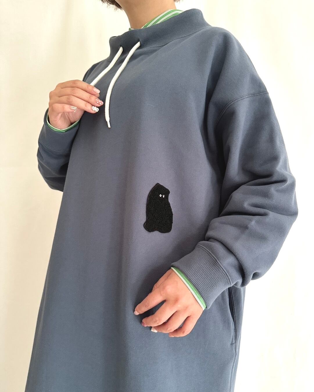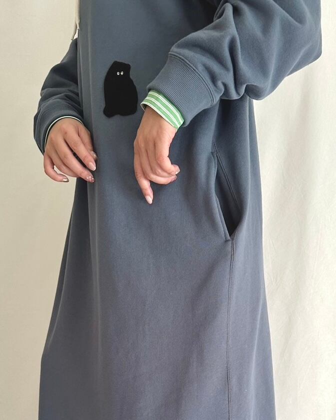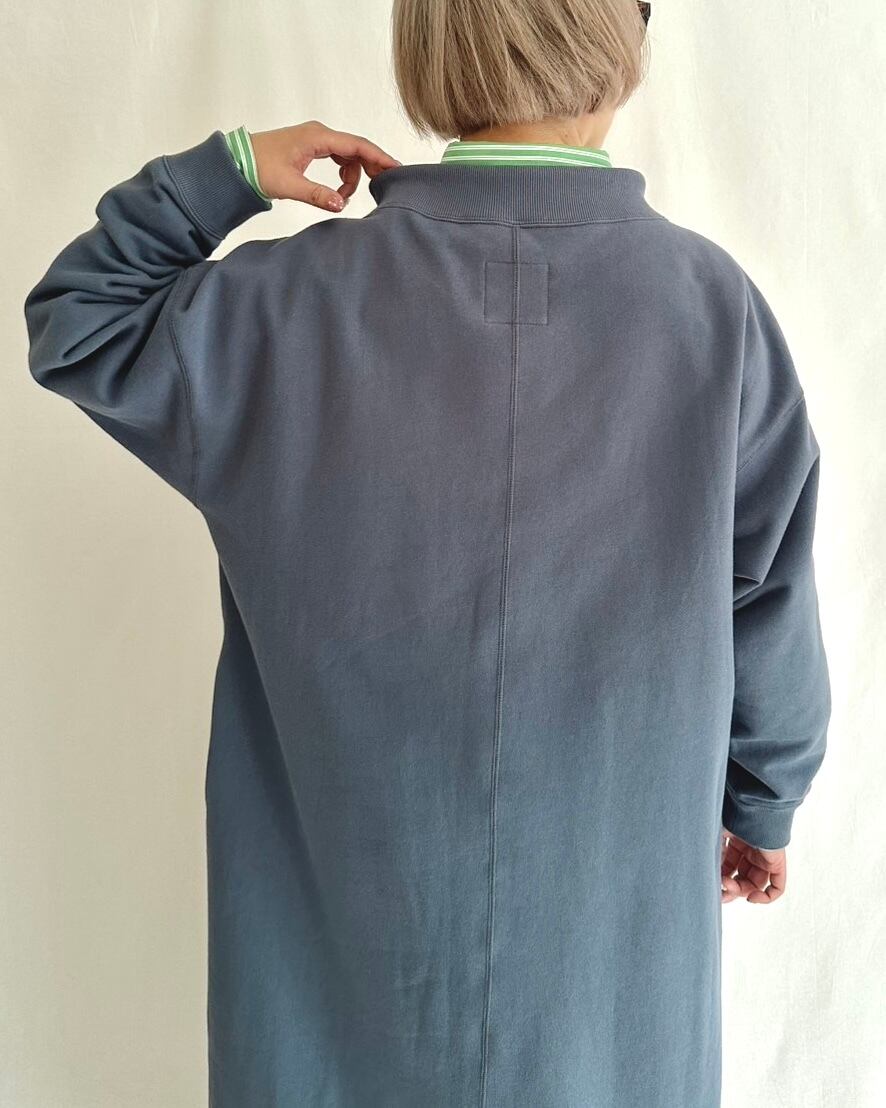 プルオーバー感覚で気軽に着られる、スモーキーブルーの裏毛ワンピ。