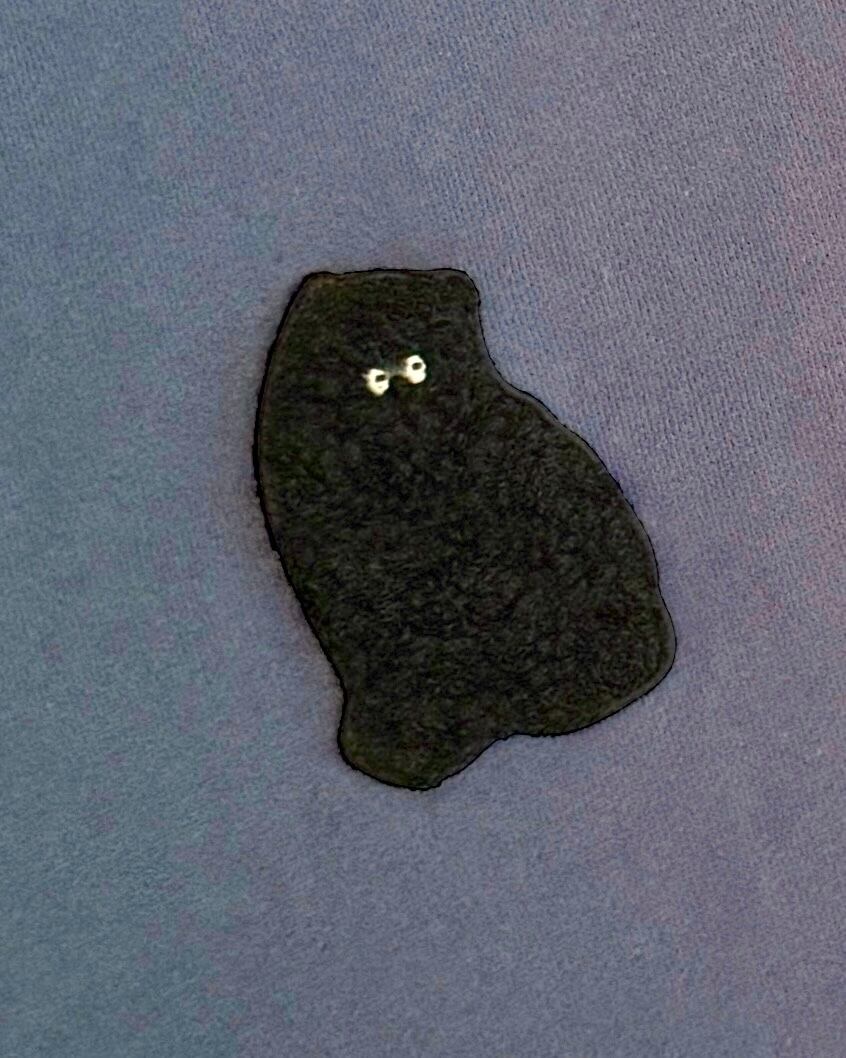 ・前身頃にアンバランスについた、「モジャ」の立体刺繍ワッペンもデザインポイントです。