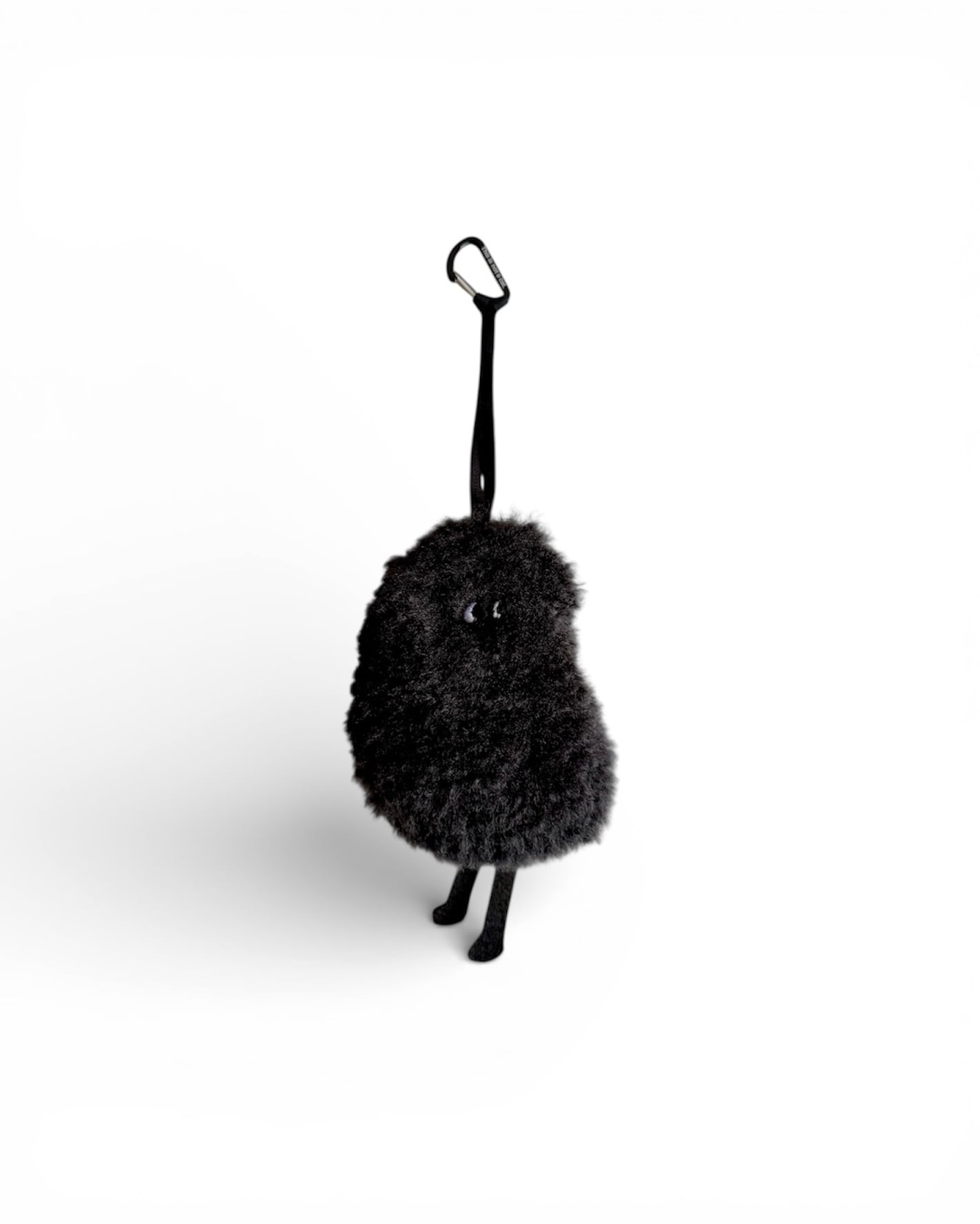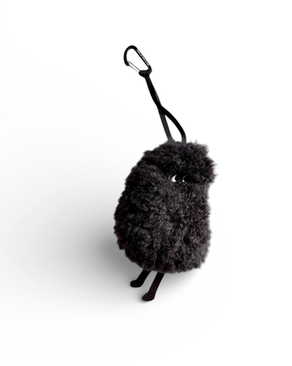 ・毛足のあるブラックのエコファーのボディに、ホワイトのフラット刺繍で小さな目を刺繍しました。