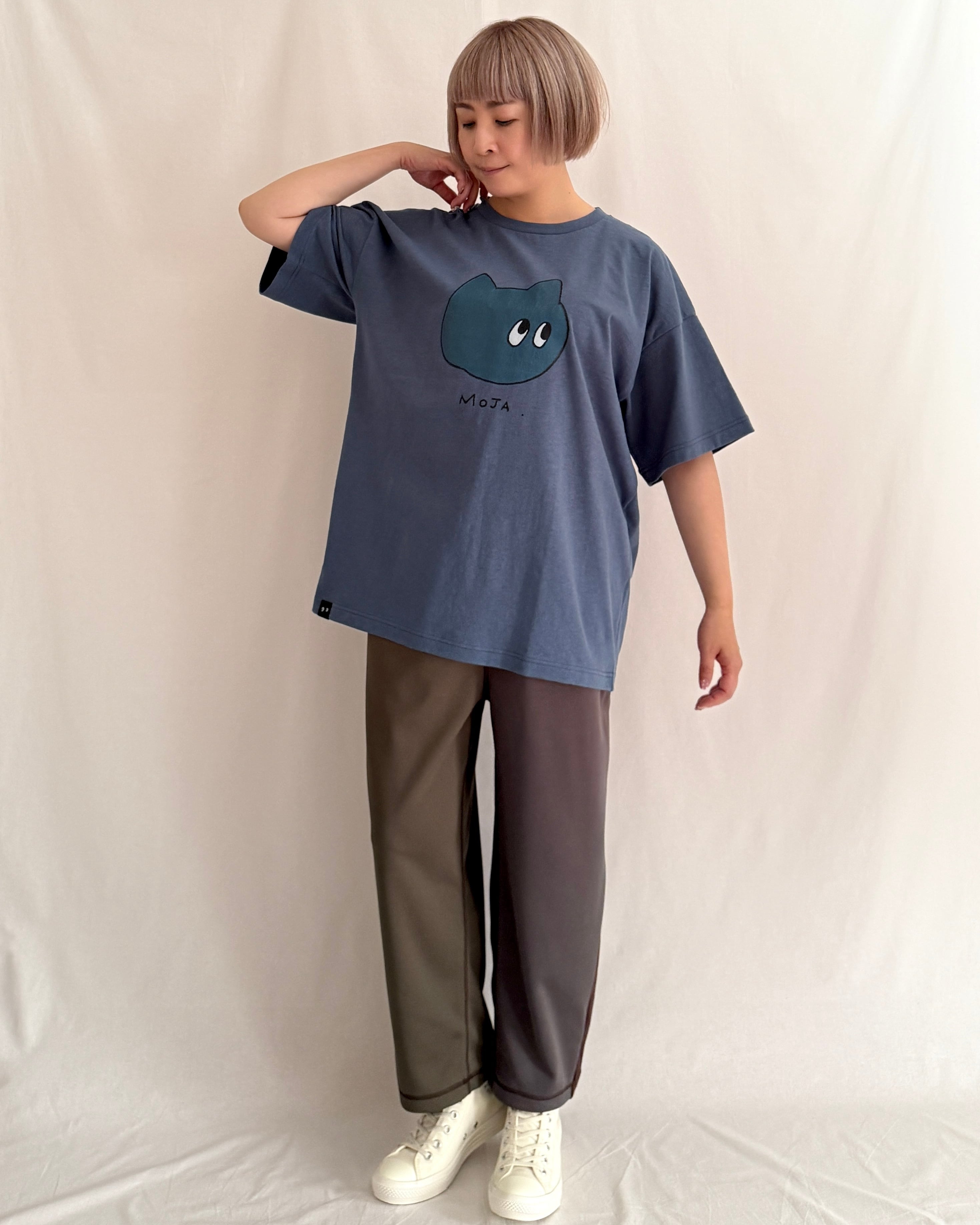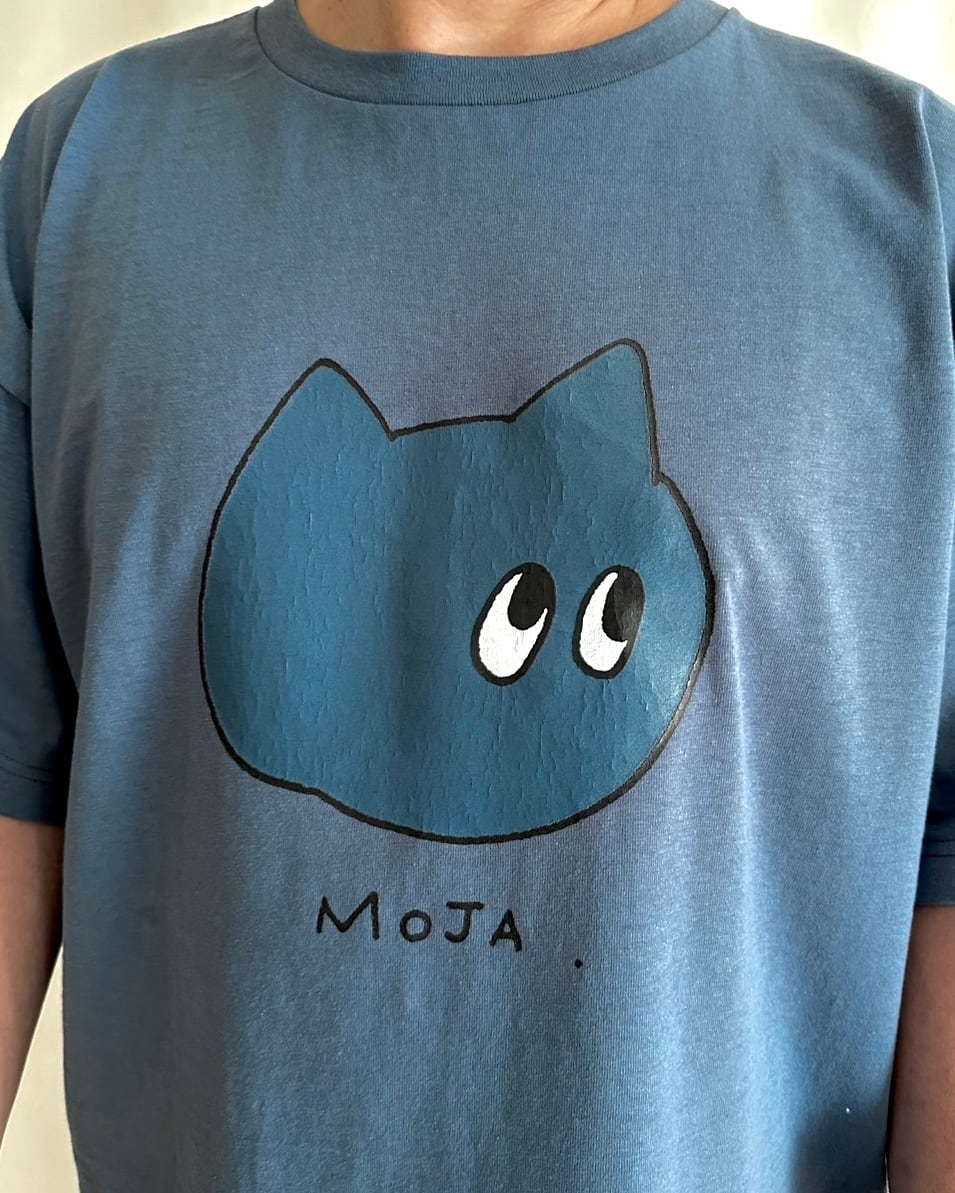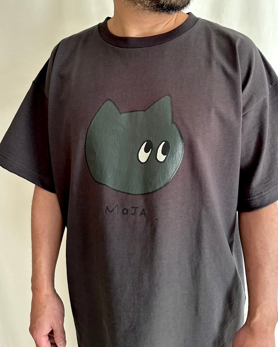 コミック風の「モジャ」をクラックプリントしたヴィンテージ感たっぷりのリラックスTシャツ。
