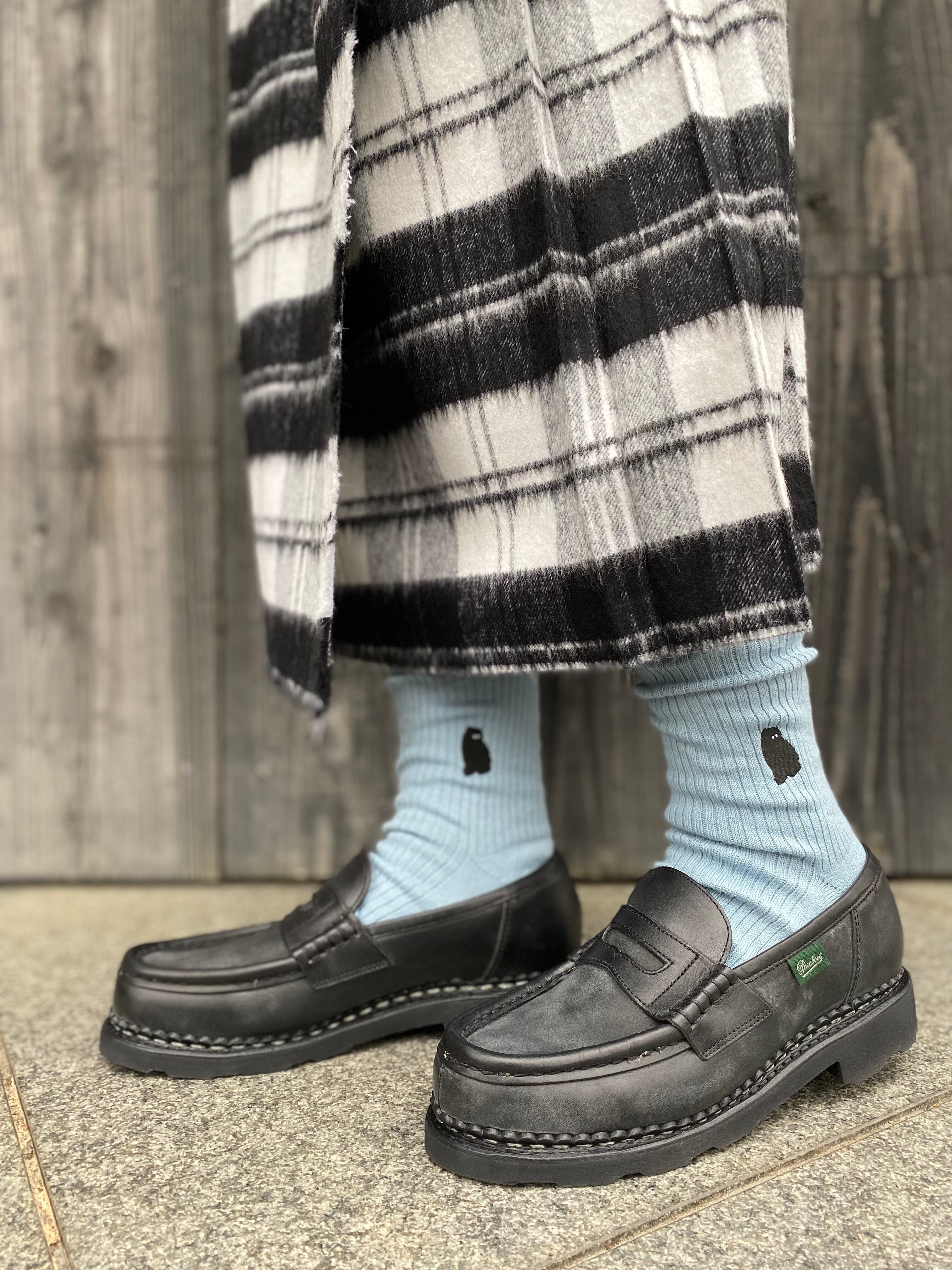 ・ショートブーツやハイカットシューズにもちょうどいい、少し長めのクルーソックス。ロングスカートなら、タイツに重ね履きしてもスッキリ見えします。